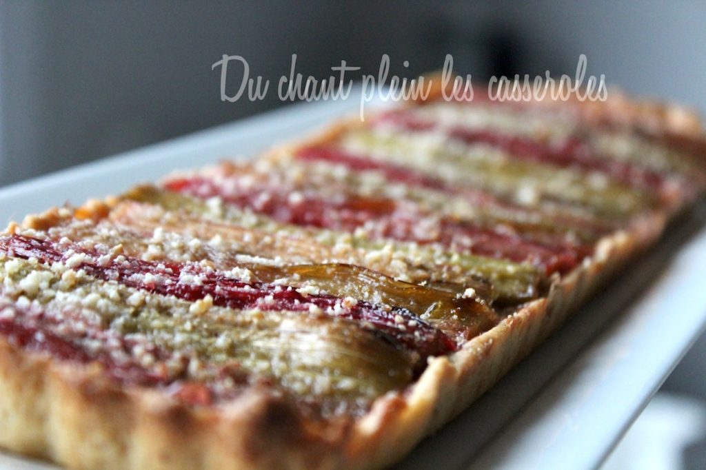 La rhubarbe se suffit à elle-même, sur un fond de tarte cuit à blanc puis recouvert d’une fine couche de gelée de fruits rouges : gelée de framboises, gelée de groseille, voire confiture de fraises. La poudre d’amandes absorbera l’excès d’eau éventuel.