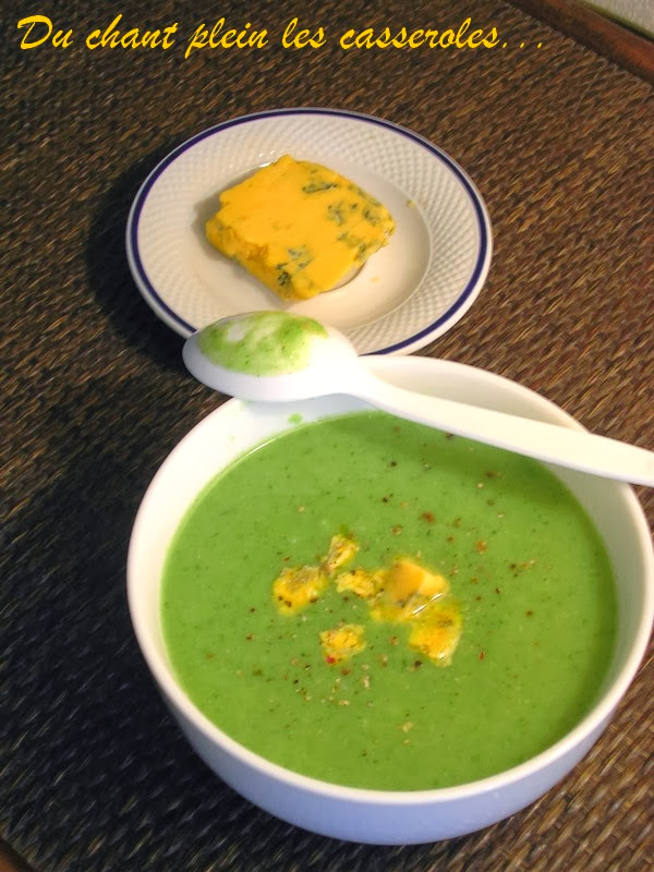 Bon, j’arrête là mon délire et je vous livre une recette où vous pourrez utiliser une partie de votre Stilton, dont le goût s’accorde particulièrement bien avec le chou. C’est un velouté de brocolis au Stilton. Une idée piquée aux soupes toutes prêtes de la marque « New Convent Garden Food and Co »…
